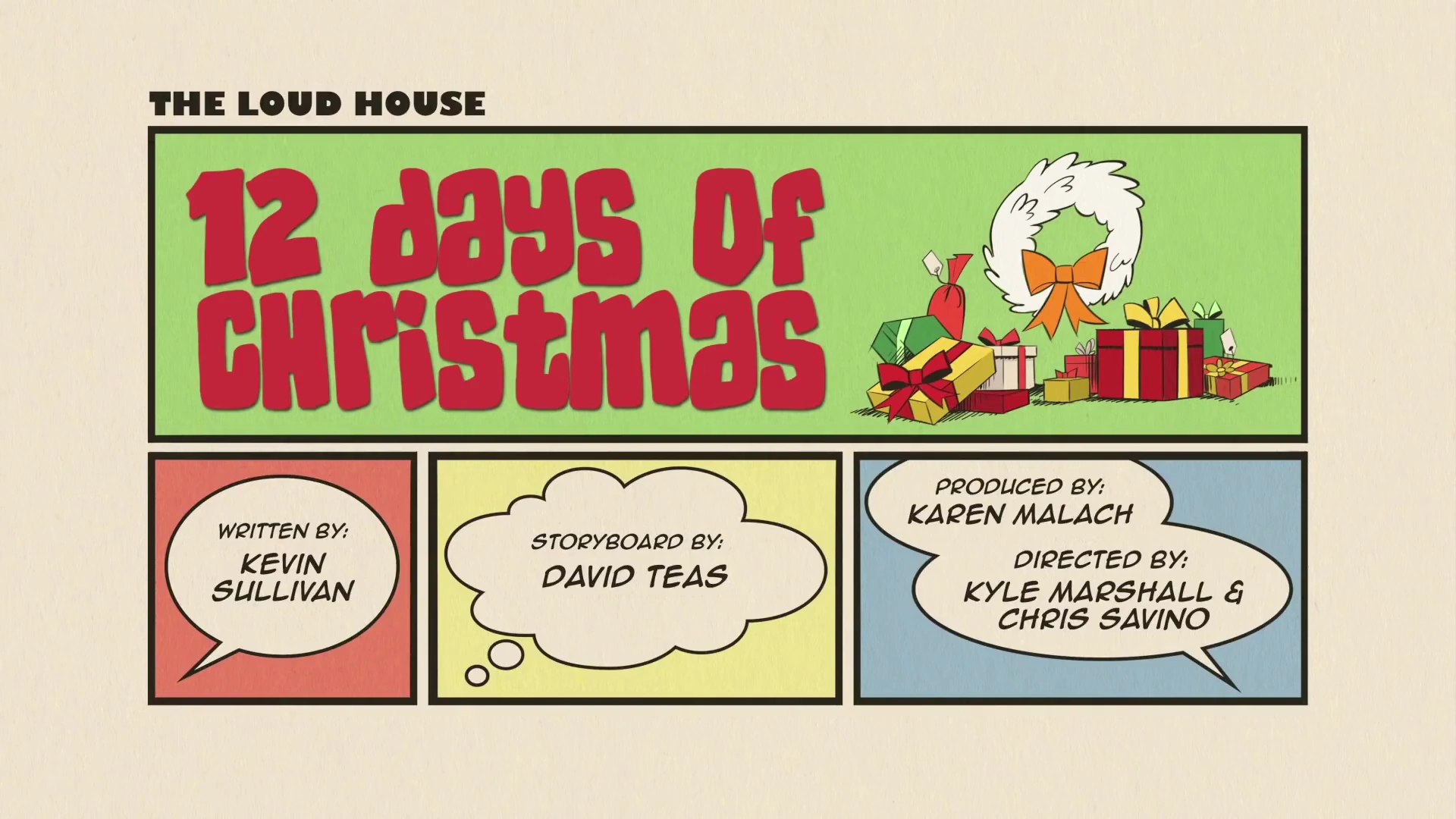 Cantando la canción navideña "Los Doce Días de Navidad", cada uno de los miembros de la familia Loud enumera sus regalos que obtuvieron en Navidad: